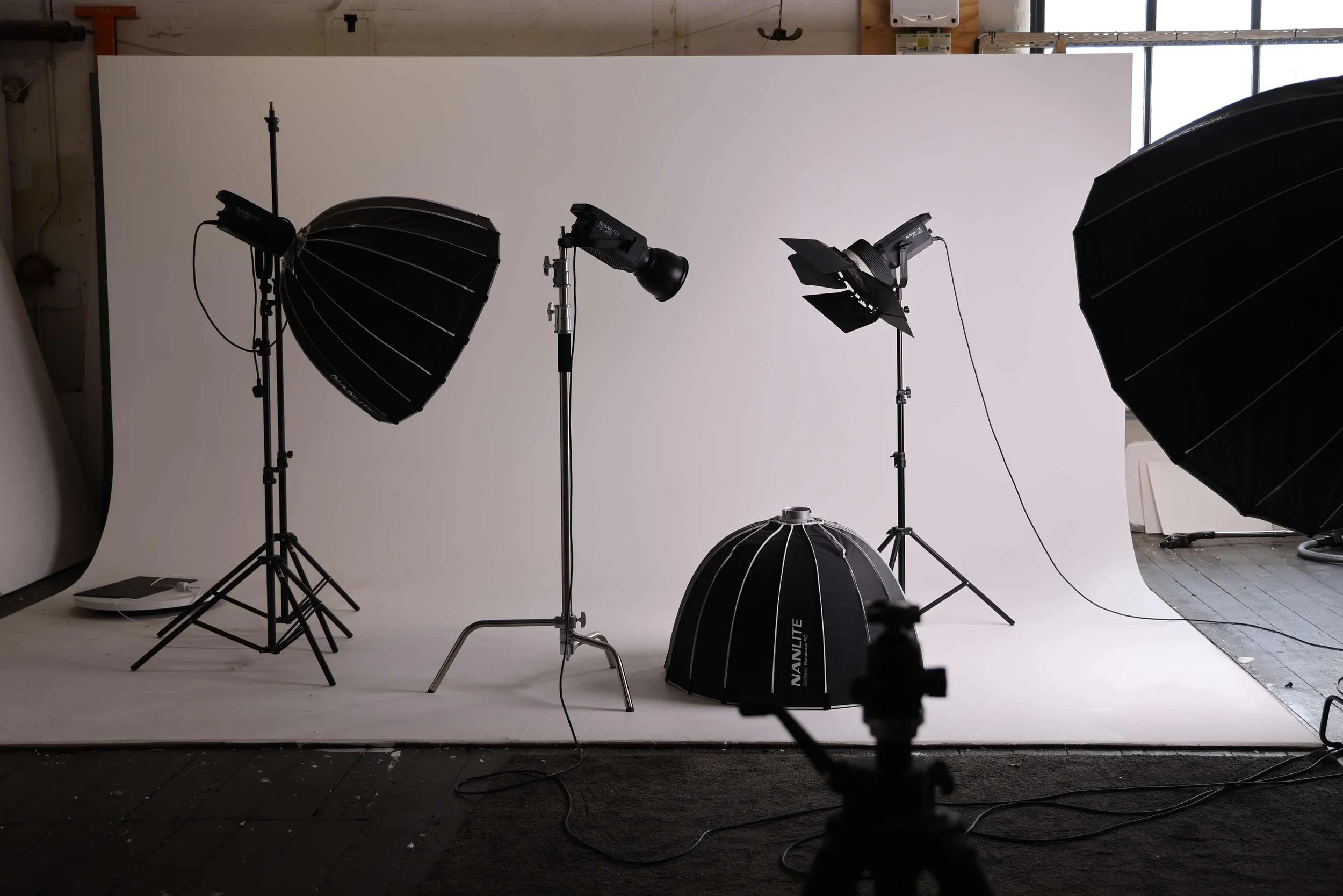 Take advantage of our complete lighting setup. From continuous to flash kits, plus reflectors, soft boxes, Fresnel, barn doors, light stands, and a 3m x 3m diffuser - everything you need to shape the perfect shot is at your fingertips